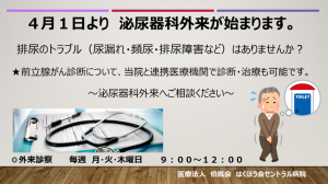 HOME > お知らせ > 2022年4月 泌尿器科を開設しました