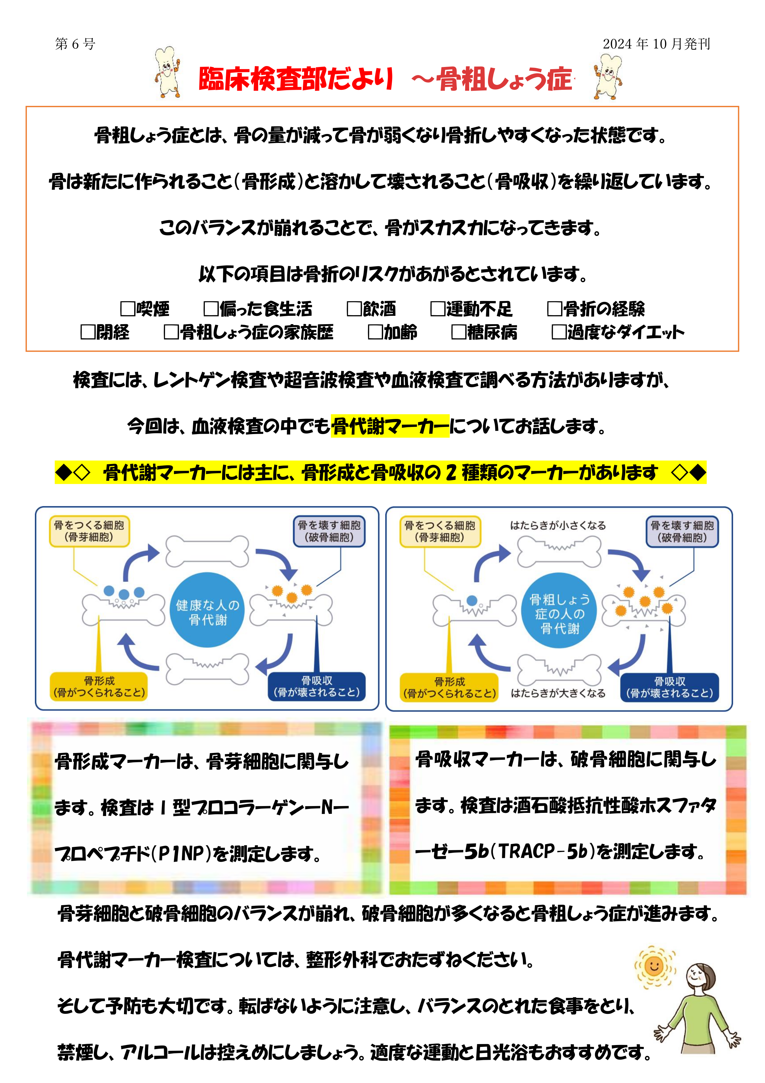 HOME > お知らせ > 臨床検査部だより第6号-骨粗しょう症について-