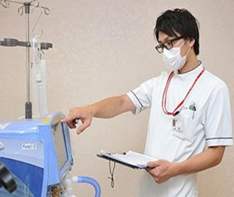 医師・看護師をはじめ他の医療専門職とチームを組み、生命維持管理装置の操作などを担当。各種医療機器の保守・点検、使い方の指導を行うことで、安心安全な治療環境の提供に貢献しています。基本的には呼吸・循環・代謝の3分野を基本としていますが、手術・集中治療・救急・在宅医療・各種検査など活躍の幅は拡大されています。