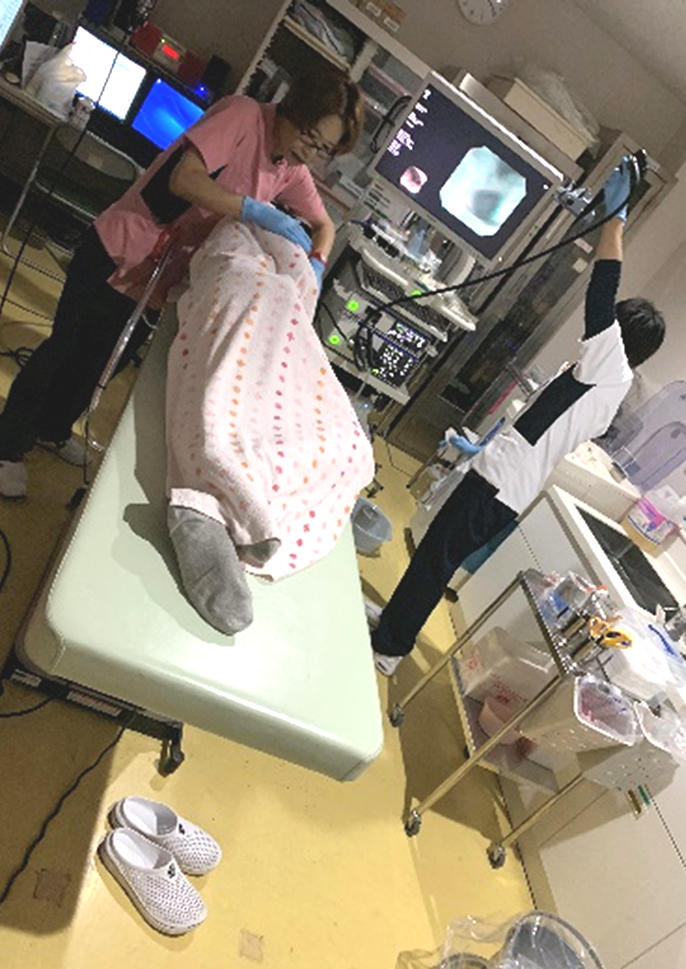 内視鏡検査や治療の補助、検査を行う前の内視鏡のチェックを行い、安心な治療環境づくりを心掛けております。