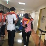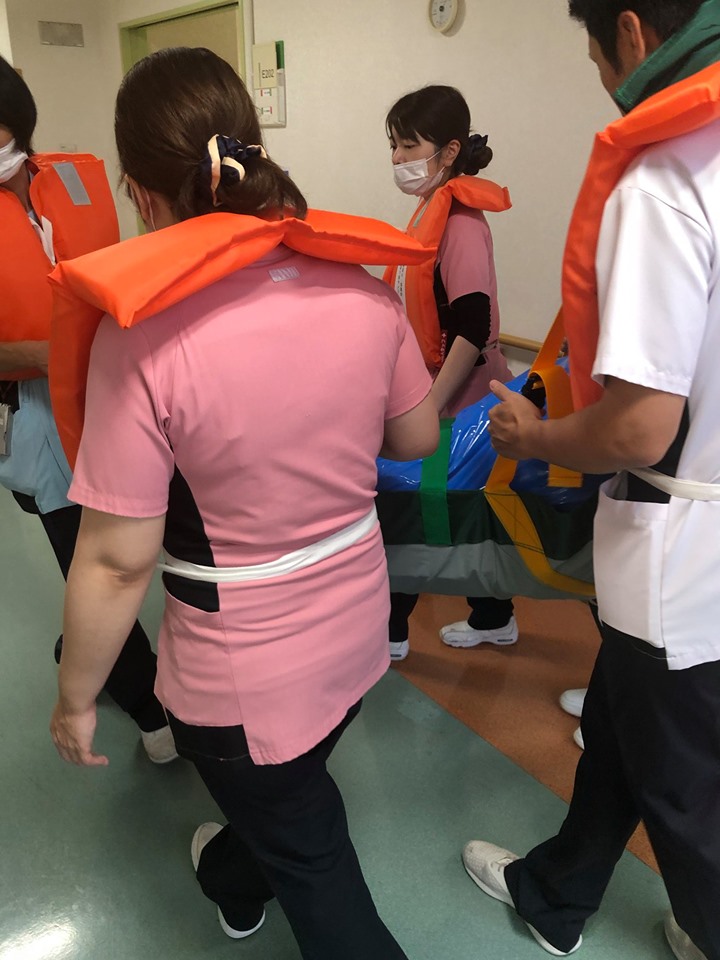 当院においては、先日尼崎ボートレース場において、水害発生時の救命ボート操船訓練を実施したところですが、今回は院内における水害発生時の訓練を実施しました。