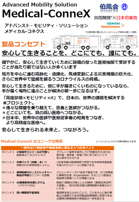 「新CT装置(世界初のIntelligent CT <128 スライス CT> )」と「Medical-ConneX(メディカルコネックス)」の詳細については以下をご覧ください。
