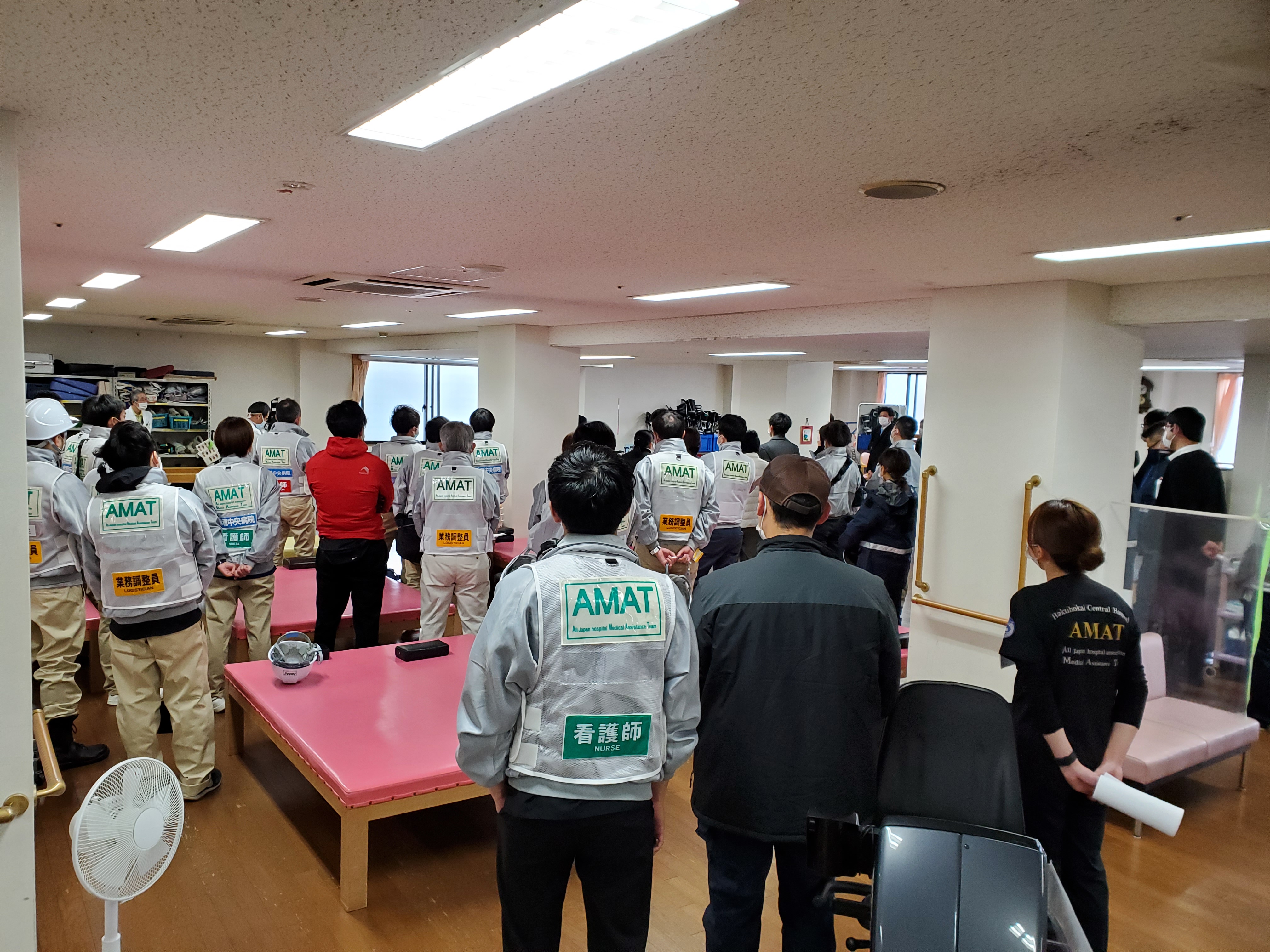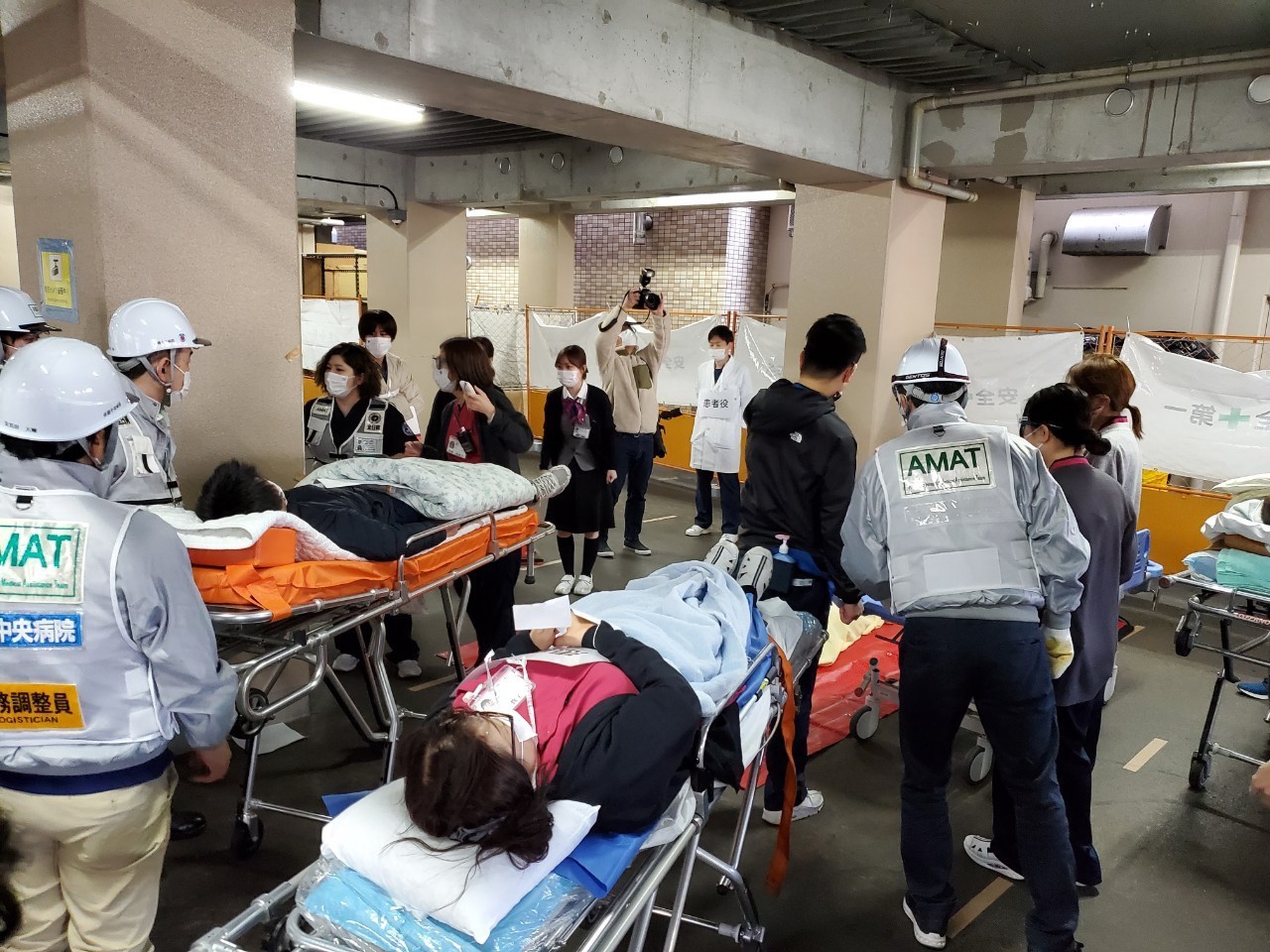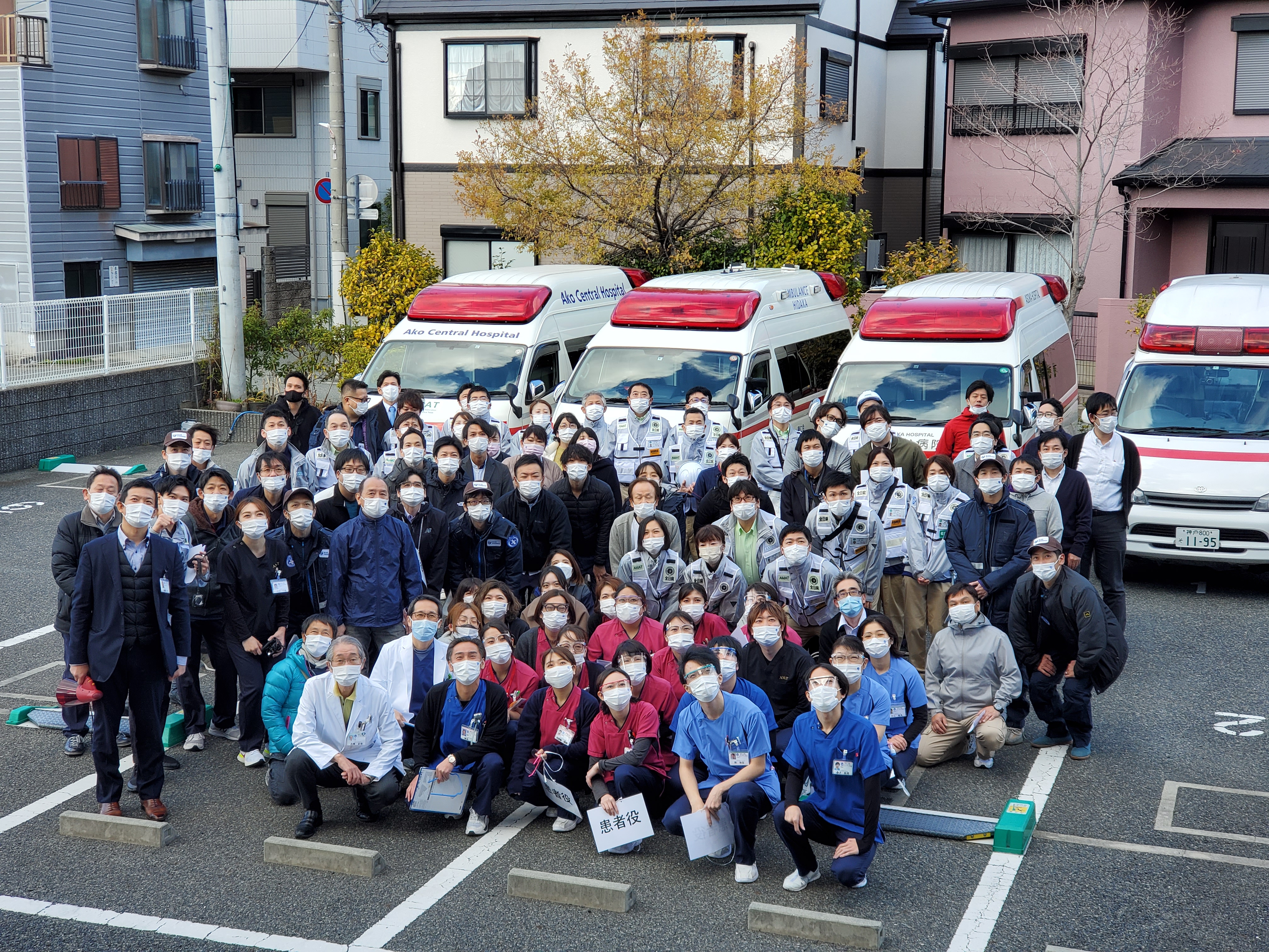 東京曳舟病院(東京)、あそか病院(東京)、旭ヶ丘病院(埼玉)、大阪暁明館病院(大阪)、大阪中央病院(大阪)、明石リハビリテーション病院(兵庫)、城南多胡病院(兵庫)、赤穂中央病院(兵庫)、はくほう会セントラル病院(兵庫)のAMAT隊員や訓練参加者が一堂に会しました。