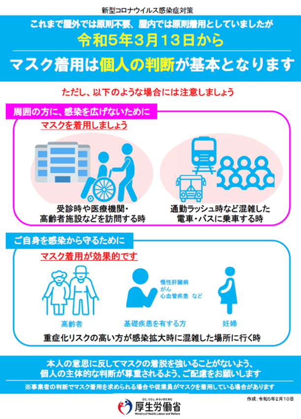 当院でも、感染防止対策のため、引き続きご来院の際はマスクの着用をお願い申し上げます。