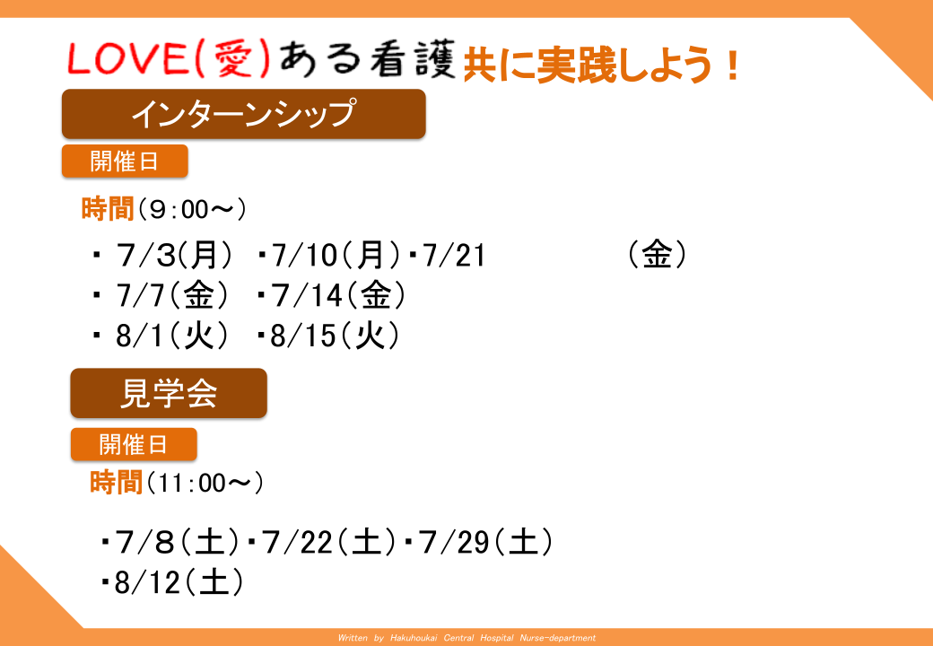 HOME > お知らせ > 看護部インターンシップ開催のご案内