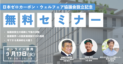医療業界の脱炭素支援団体『日本ゼロカーボン・ウェルフェア協議会』を設立いたします