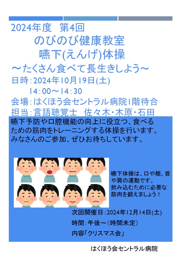 HOME > お知らせ > 2024年度 第4回 のびのび健康教室「嚥下(えんげ)体操 ~たくさん食べて長生きしよう~」