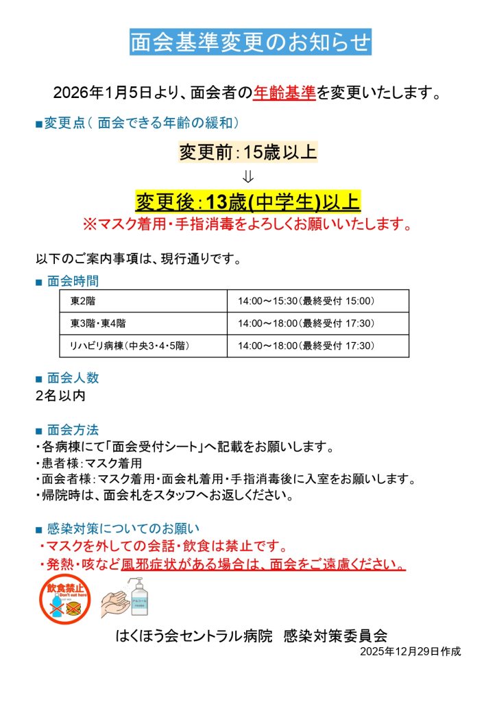 2026年1月5日より、面会者の年齢基準を変更いたします。